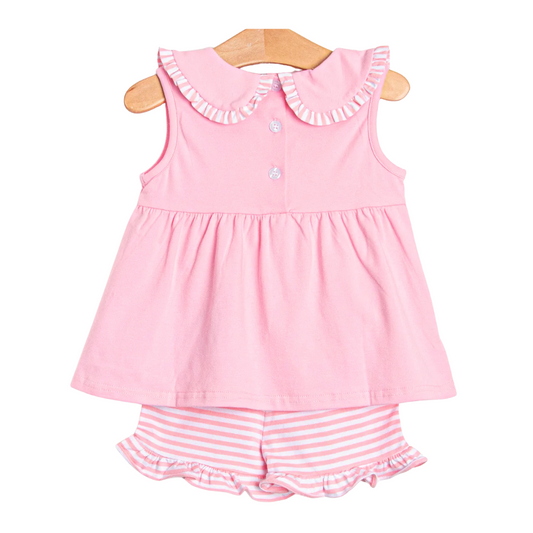 White Shark Smocked Tee and Navy Stripe Shorts Set