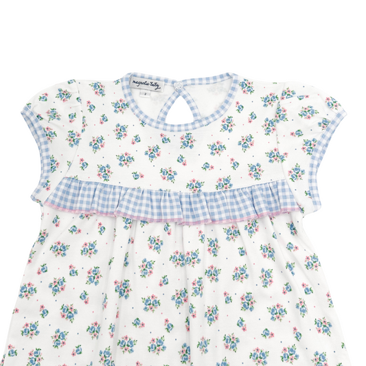 Anna's Classics Sky Blue Printed Ruffle Dress