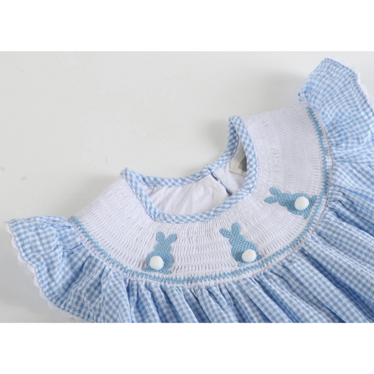Blue Seersucker Bunnies Smocked Shirt and Shorts Set