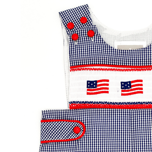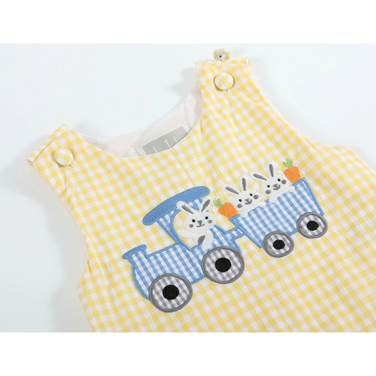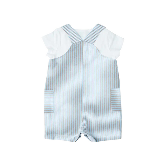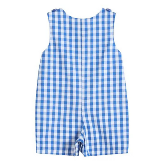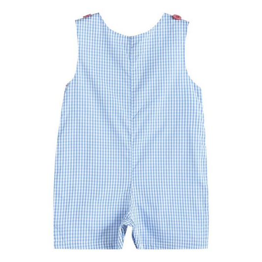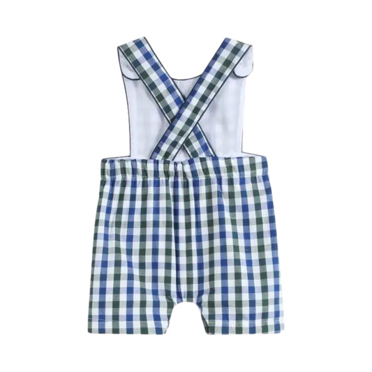 Blue Gingham Farm Animal Tractor Pocket Shortalls