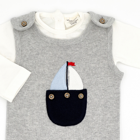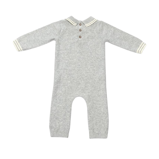 Gray Milan Knit Collar and Cable Baby Jumpsuit