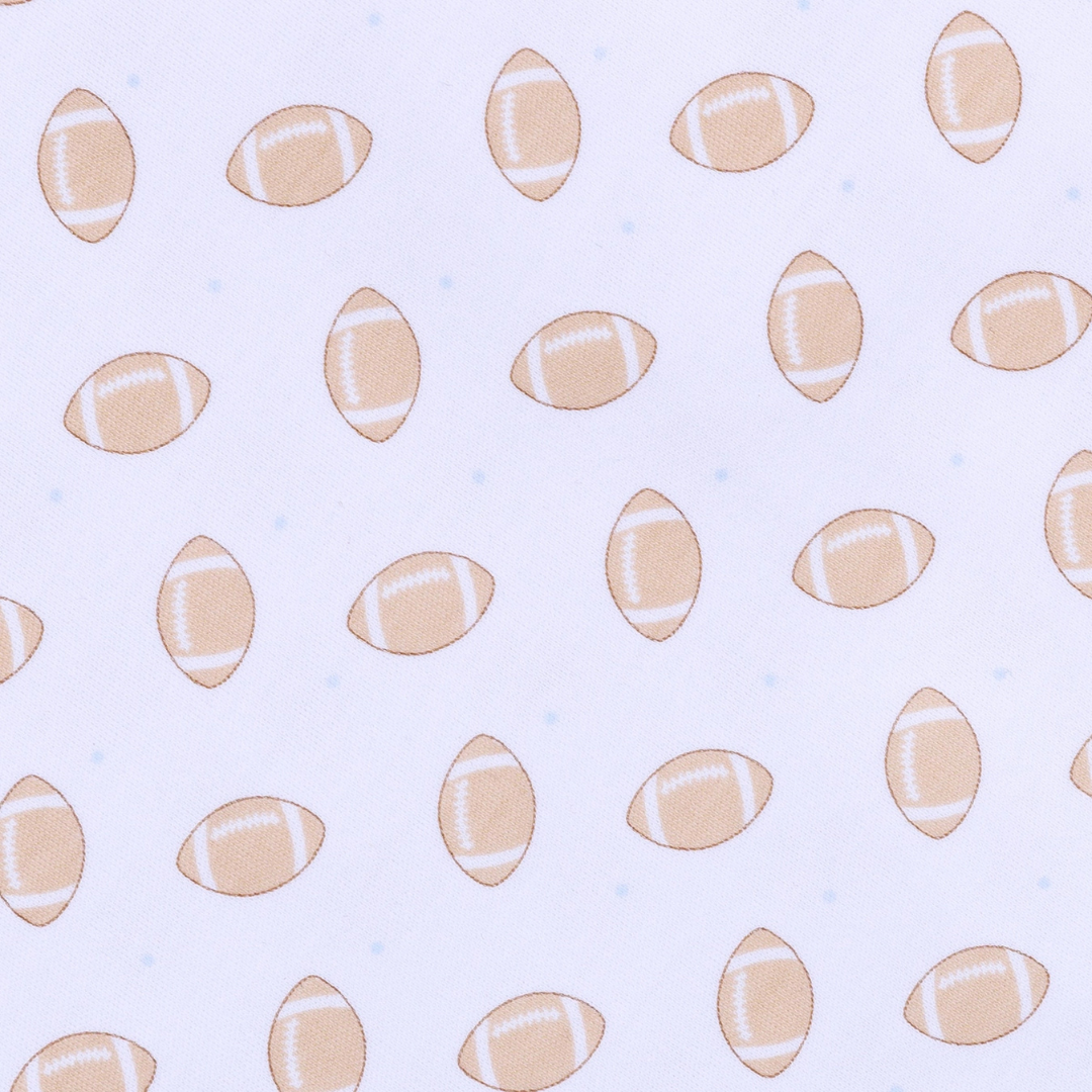 Without a doubt, these pajamas are a touchdown! Made of incredibly soft pima cotton adorned with footballs, these pajamas are sure to make game day all the better!Β